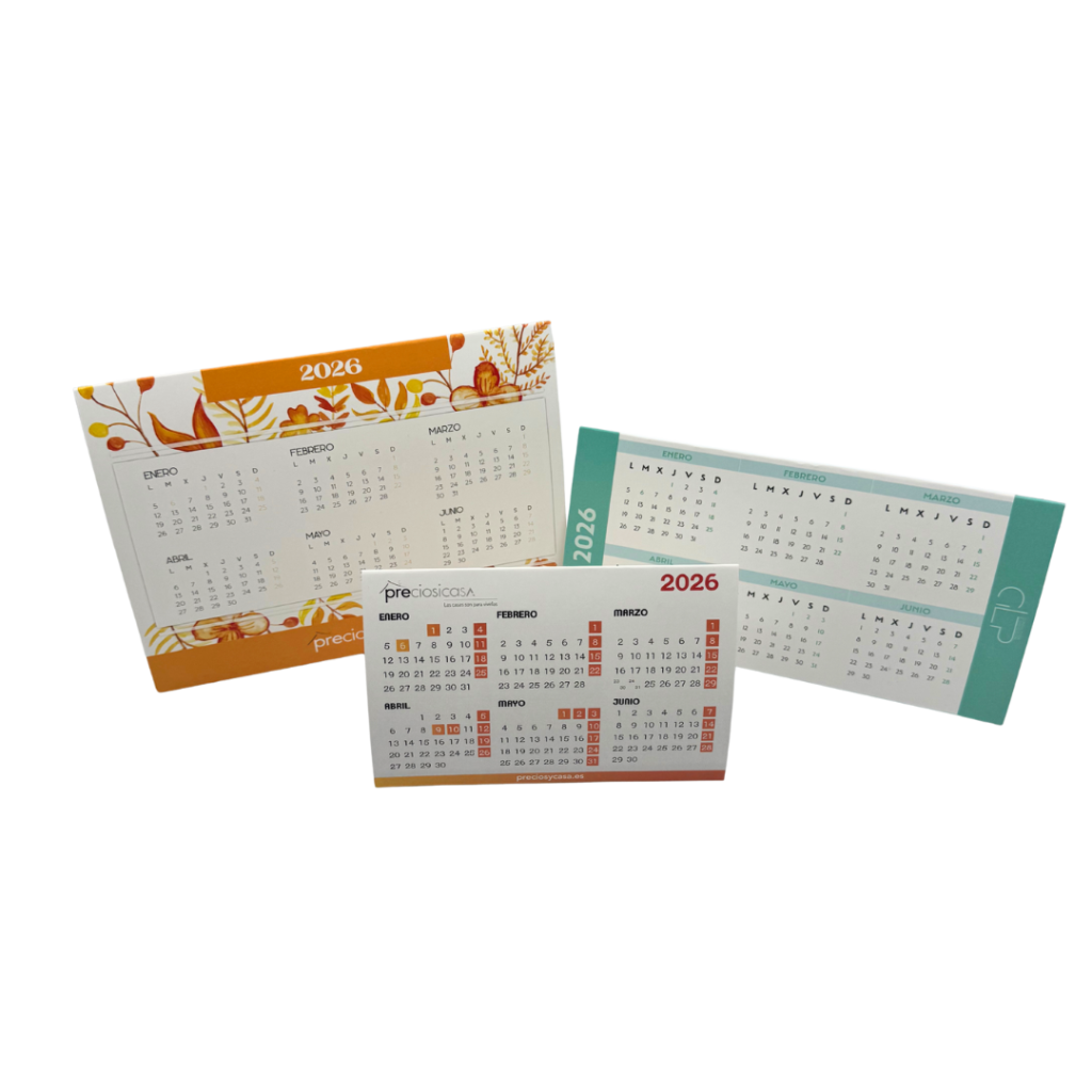 El calendario publicitario sigue siendo el mejor regalo promocional que le puedes hacer a tus clientes. ¿Quieres que tus clientes te vean todos los días del año?. Los calendarios personalizados de mesa son tu mejor opción. Totalmente personalizados; colores, tamaño, temáticas, fotografías de producto, servicios, maquetación, diseño gráfico… El calendario de mesa es la forma más discreta de permanecer en la mesa de tu cliente durante todo un año: calendario de mesa con espiral, calendario de mesa con wireo, calendario de mesa semestral, planificadores de mesa…